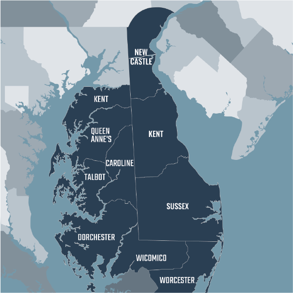 Serving New Castle, Kent, and Sussex (Delaware) Caroline, Wicomico, Kent, Dorchester, Talbot, Worcester, and Queen Anne’s (Maryland)